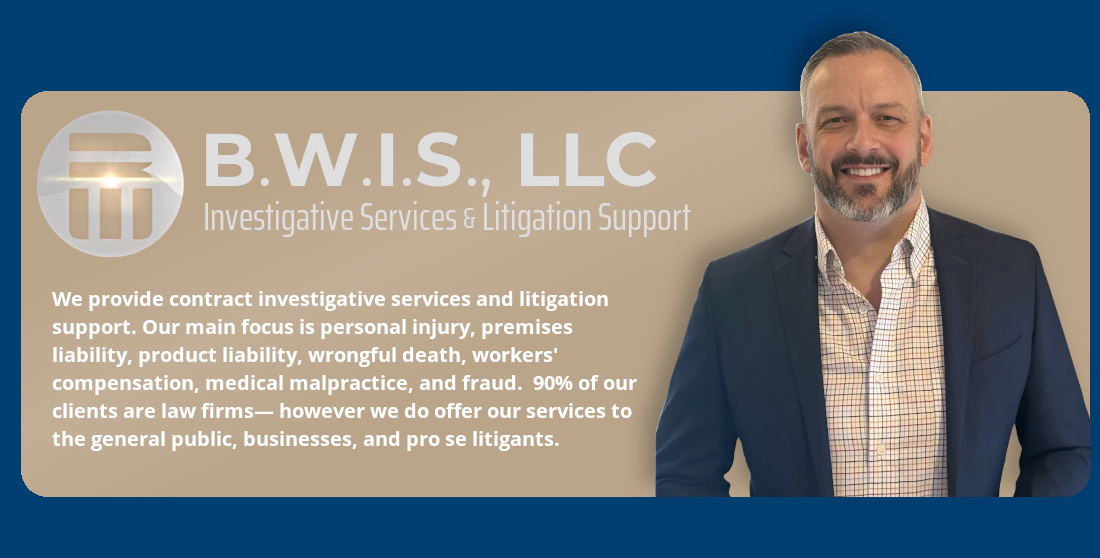 Brad Whiteis, Contract Investigator | 843-957-0388 | bwis.llc1@gmail.com